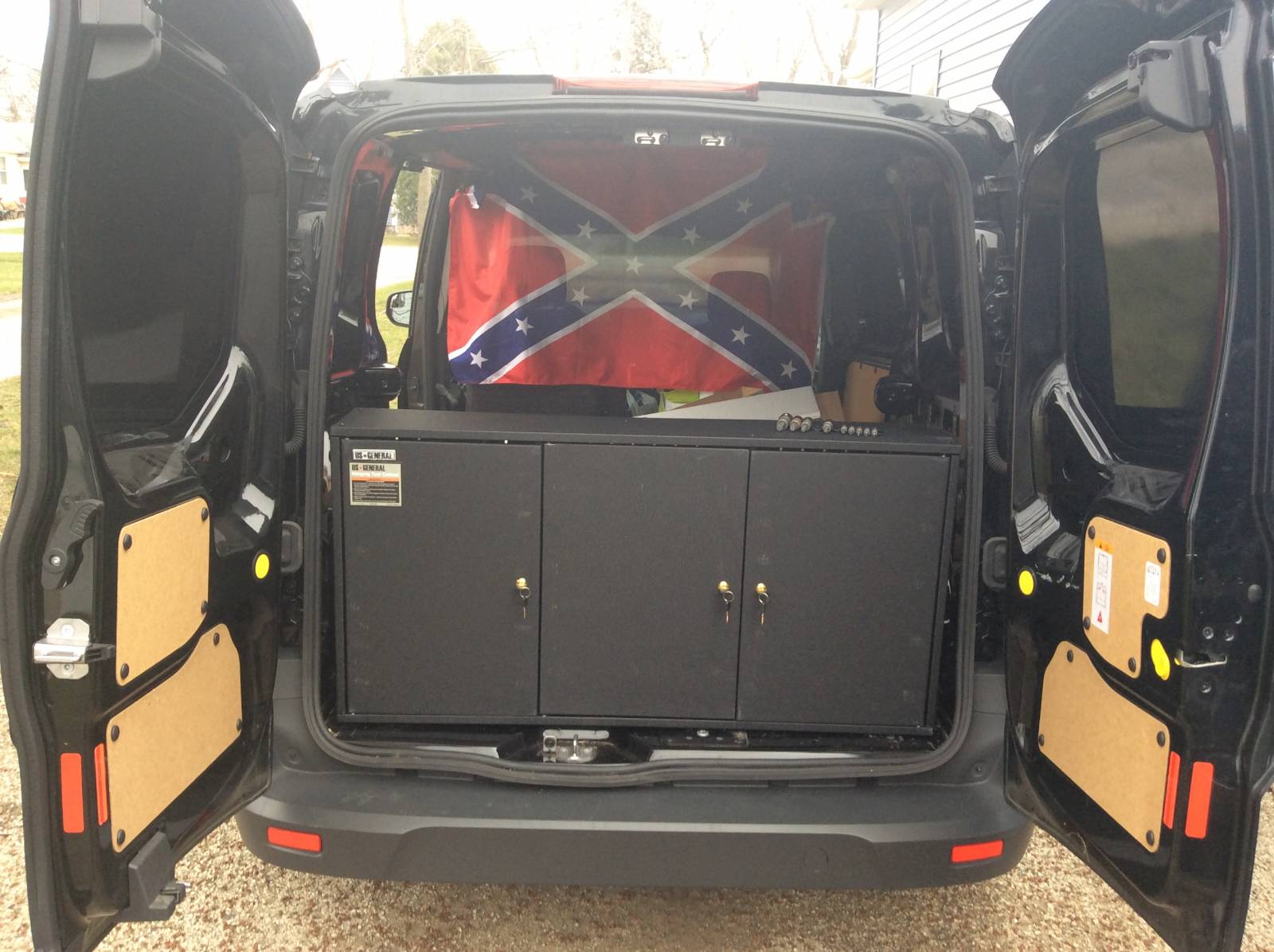 This is the Harbor Freight hanging tool cabinet, it's about $70 and I used a 20% off coupon to bring the price down more. Dimensions are 47.5" wide, 23.75" tall and only 8" deep so there's still a good amount of space left in the van. It's not mounted yet, gotta figure out how I want to mount it in the van...