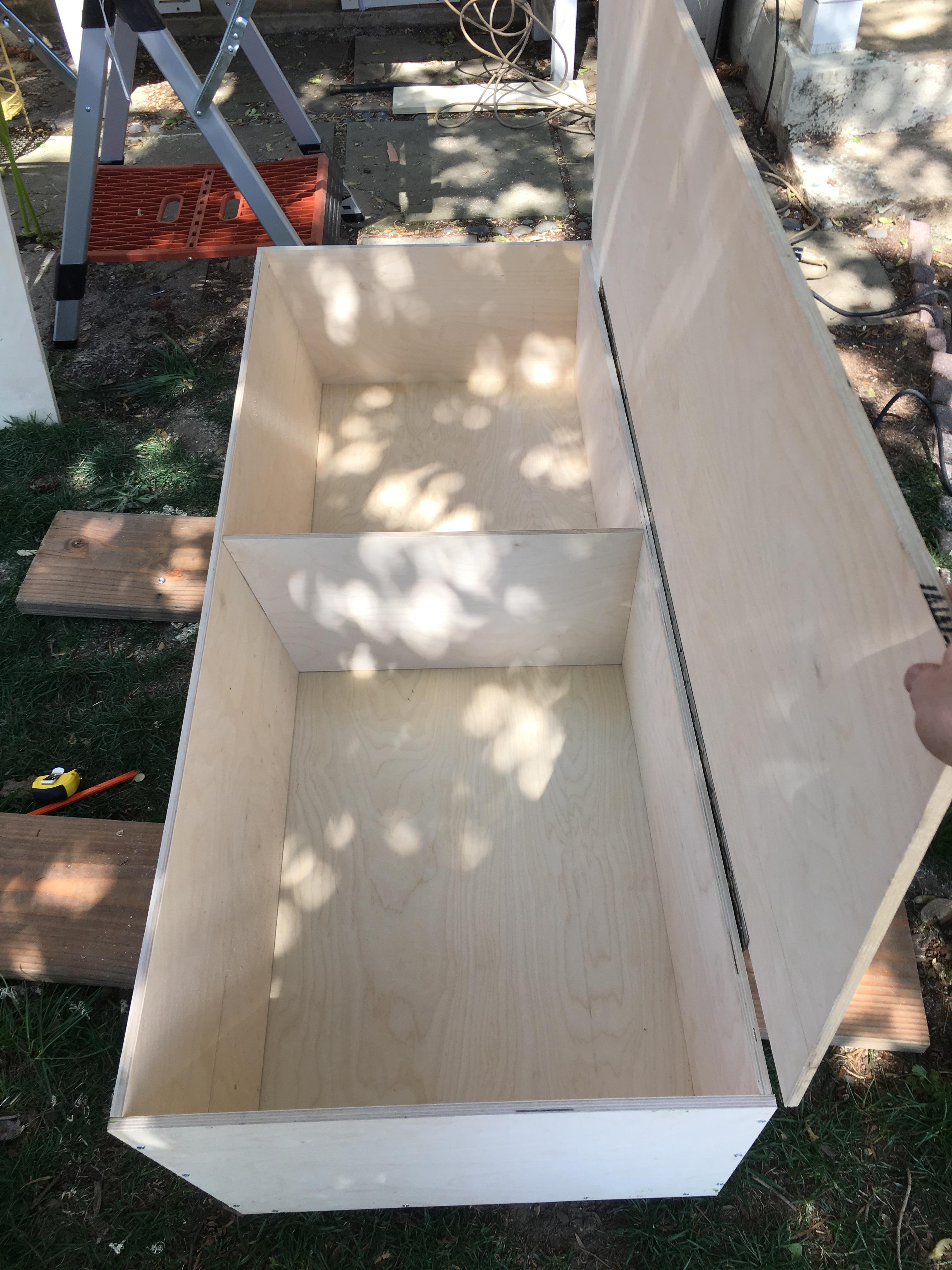 Interior of Box 1, the base of the couch and bed.