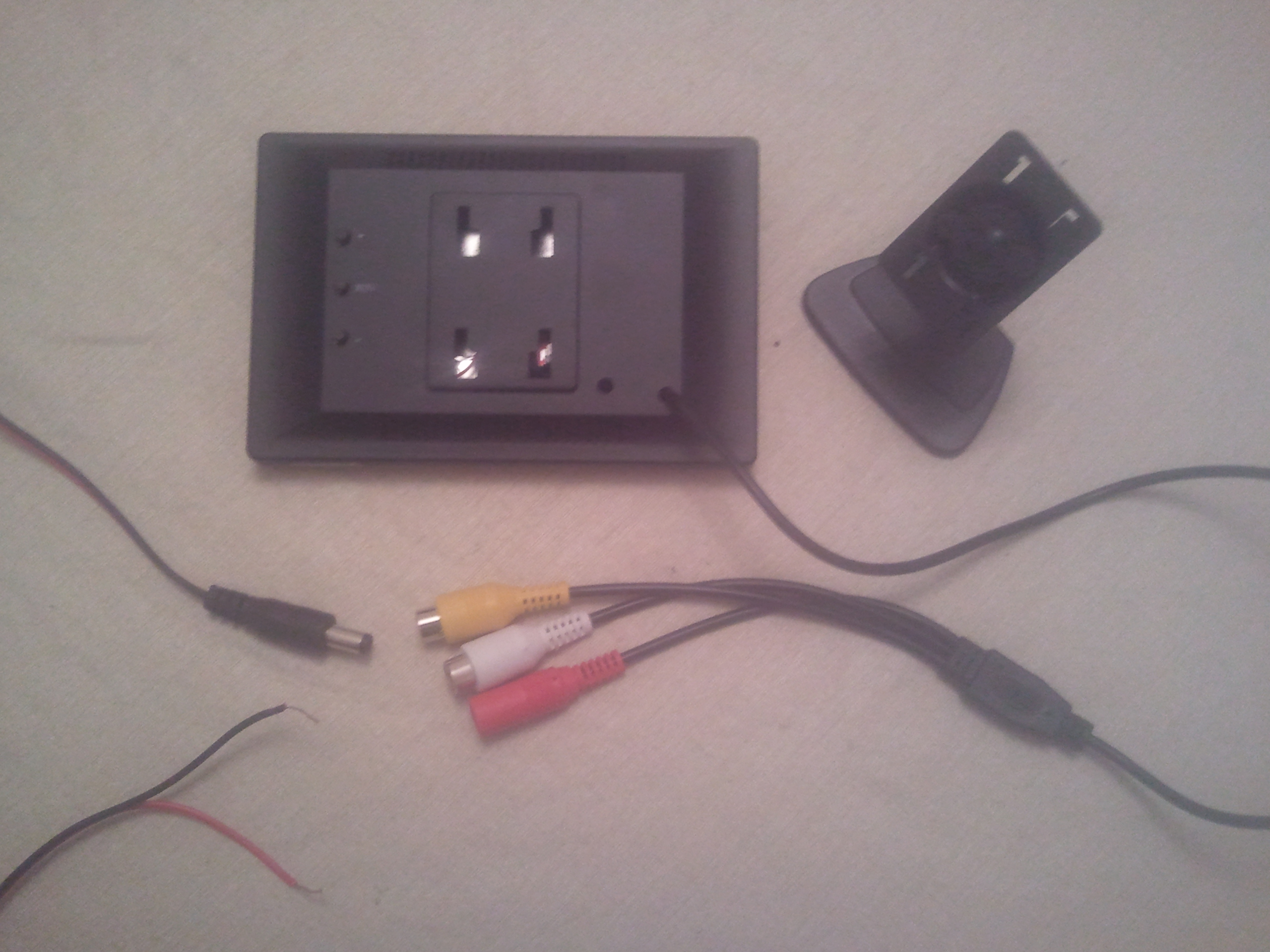 Power supply is on left. 2 video inputs (yellow and white. Removable bracket on upper right is modified later