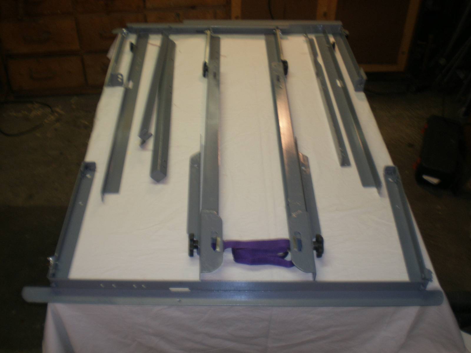 Parts are put together in sections. Two of these sections can be permantly mounted into the van with out taking but about 1 inch of floor space and can serve as strapping rails for cargo. The two sections will serve as a bench and basic foundation the the remaining beds.