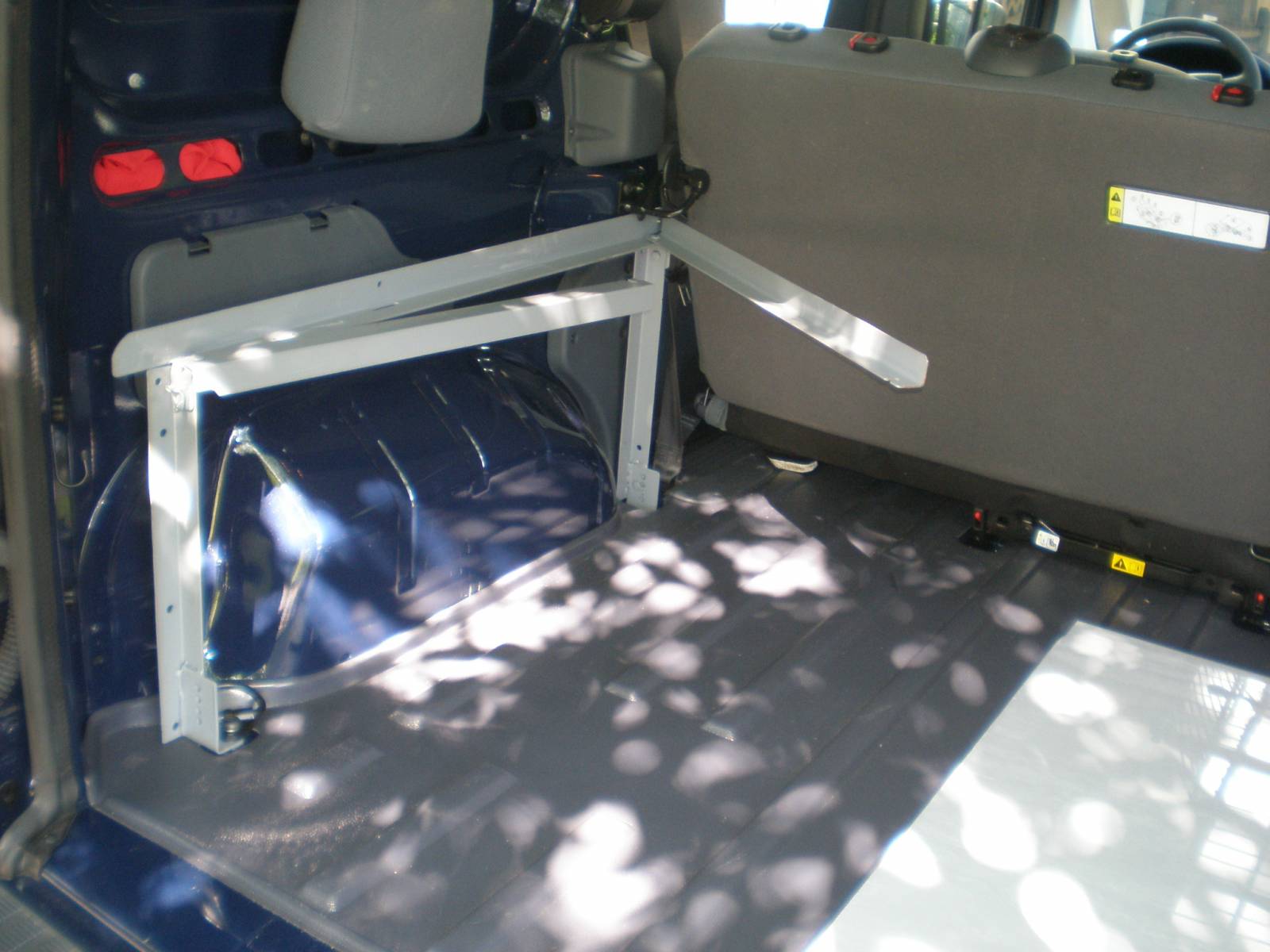 The fondation leg supports are bolted to the back d-ring and the seat belt floor mounting. the top bar swings out and will attach to the other support legs making a 24x36 bench.