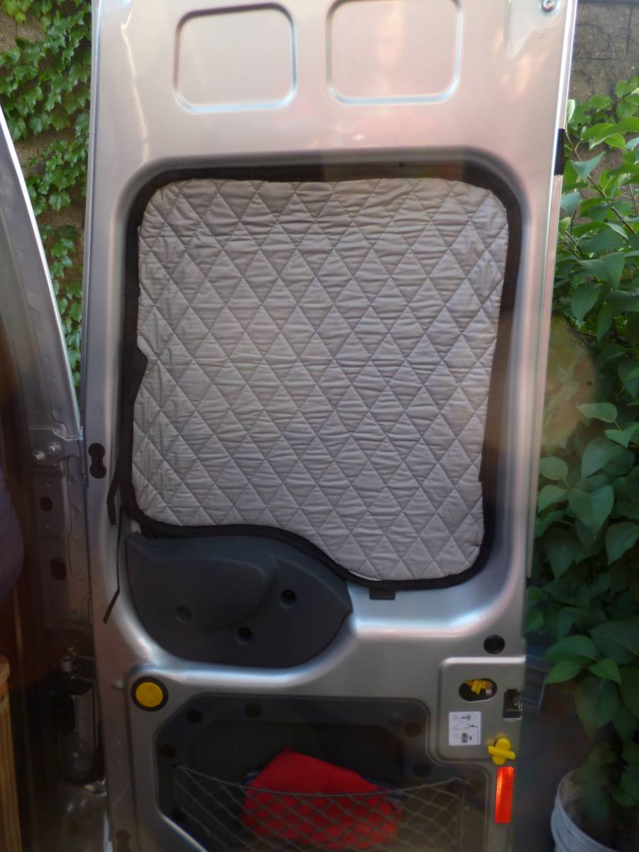 Window shade w/ quilting on the inside held in place by magnet in each corner.