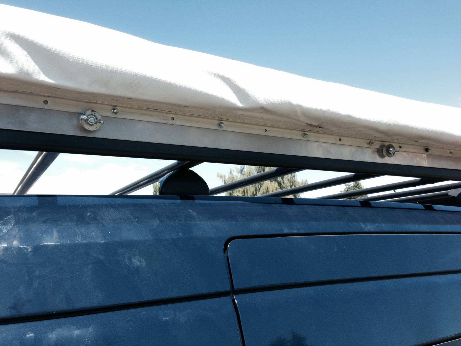 Photo Information for Awning, aluminum bracket w 2 attachment bolts, (removes easily so vehicle can go through car wash)