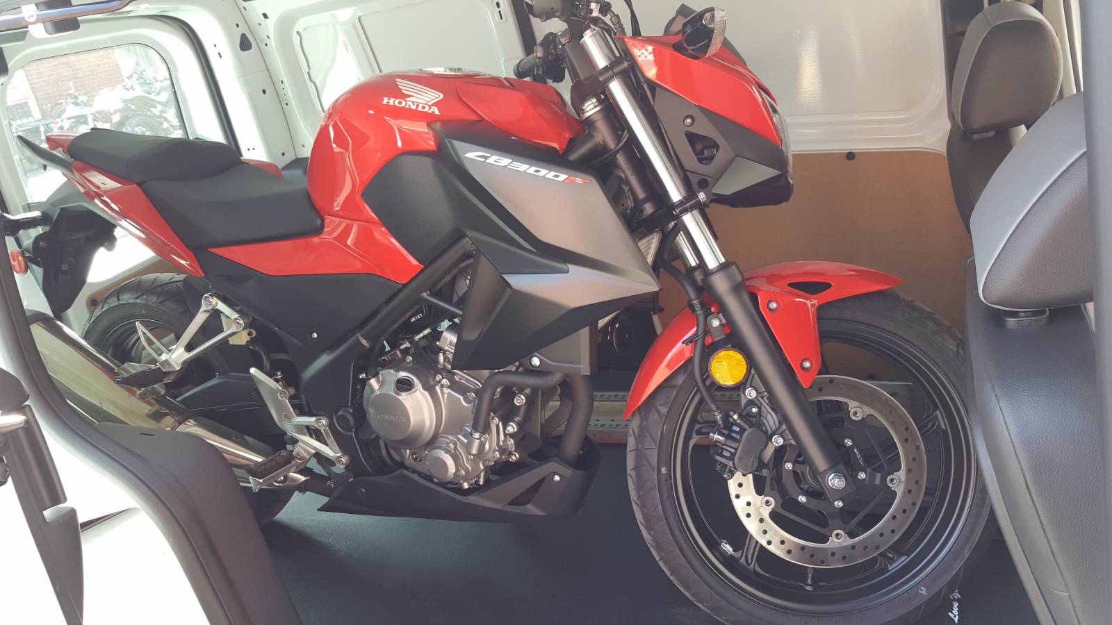 2015 CB300F wits with only mirrors off. (Would have cleared if not for the rear door latch so may clear door way of LIFT GATE model