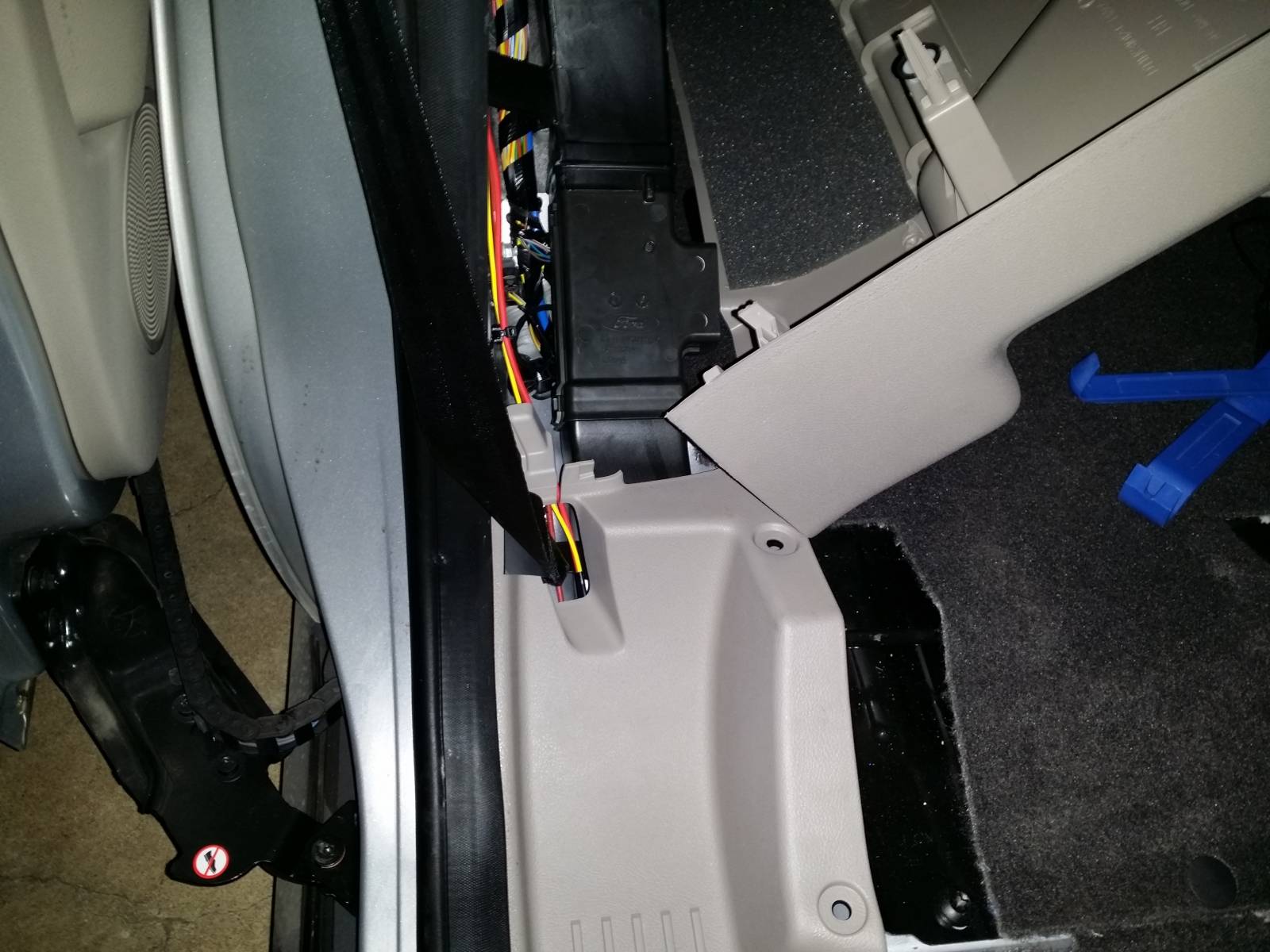 Door trim panels already reinstalled over wiring.